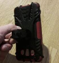 I shopped around before choosing this cell phone holder. I bike on dirt roads quite a bit, and I wanted to be sure that I purchased a product that would be sturdy enough to handle frequent bumps.This product was it! It was easy to attach to my handlebar, and easy to place my phone, complete with OtterBox case, in the rubber guards. Both case and phone have remained stable for 2 weeks of pretty challenging tests. There is no movement of either, and I am never worried about the phone falling. I highly recommend this product.