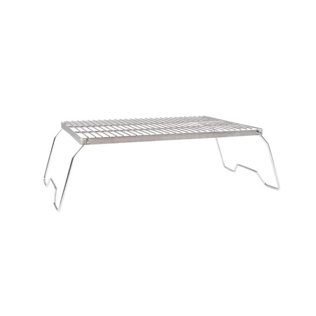 Instead of bringing a full BBQ camping just dropped some charcoal in the fire pit and used this grill to cook. Folds pretty flat and easy to pack away. It worked well for our needs and saved us from packing the bulky BBQ. Size is good for a small family - we had 3 chicken breasts on it. I like that it is stainless steel since I wanted to cook directly on the grill.