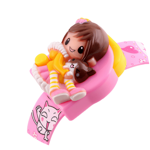This is an absolutely unique watch, I’ve never seen anything like it!!! It looks so cool and cute, I wish we had such watches when I was a kid lol. I got it for my 6 yr old and she adores it!!! The little girl and the cat are very nicely designed, the band is smooth and comfy. Amazing gift for little girls!!!