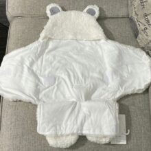Came very fast and was very soft and snuggly. Ordered this for my cousin who lives in Alaska and I think it will be a great cozy cover/ wrap for her little one!
