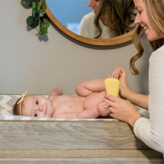 We love this product! It’s great for easy diaper changes with a busy toddler and also great for my newborn as well. Very soft and durable. I wouldn’t do a diaper change without it!