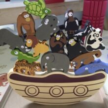 This is an excellent wooden animal set for a child. The quality is great, the animals are fun and easy for little hands to hold. The stacking game is best played for children with the boat on its side. Putting all the animals on the boat is a fun game for a one year old. Stood upright it’s adult level difficulty.