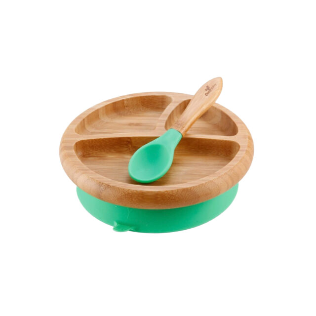 I love this bowl and spoon! The bowl perfectly suctions to a plastic high chair tray and my 8 month old cannot remove it! I love the little compartments for separating foods. The spoon's silicone is perfectly soft for little mouths. The only downside is that it is not dishwasher safe since it is made of wood, but that's perfectly expected when you want to minimize the use of plastic for your little ones!