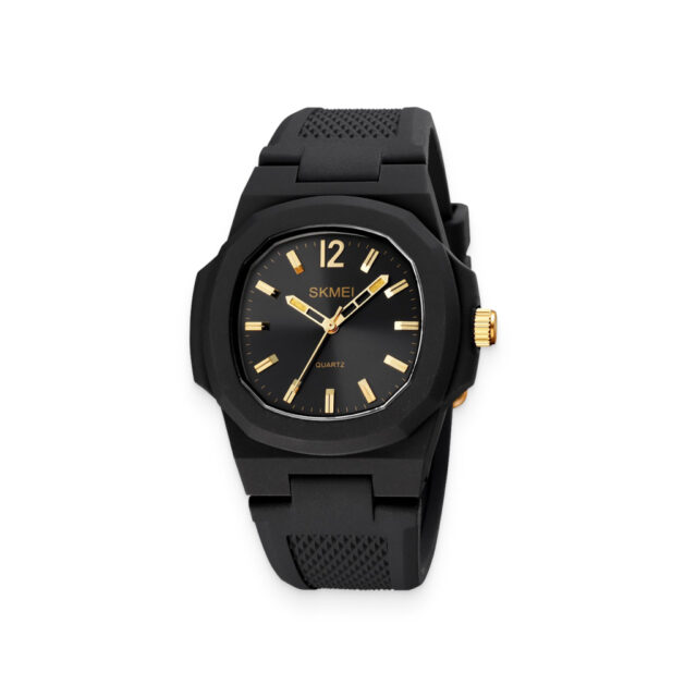 The silicone band feels a bit weird on the skin, but it’s easily adjustable. I really like the design though, black and gold look perfect together.