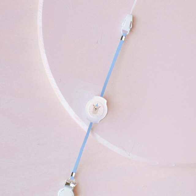 Ella was obsessed with pacifiers. Once we discovered pacifier clips, we were so happy that they kept us from losing her pacifiers. They also kept her from throwing her pacifier the ground. But we quickly realized there were two major problems with regular pacifier clips—they are a long and loose enough to accidentally get wrapped around baby’s neck and they allowed the pacifier to drag on the ground while baby crawled.