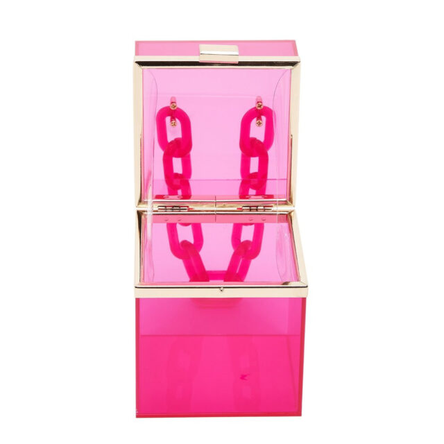 I love this purse. Out of all the clear acrylic purses I seen, this was the best looking one. I love the color and I love the chain. I think the chain makes it look more high end than some strap or something. With this bag I feel like I’ve just arrived from Milan fashion week. Perfect date clutch!