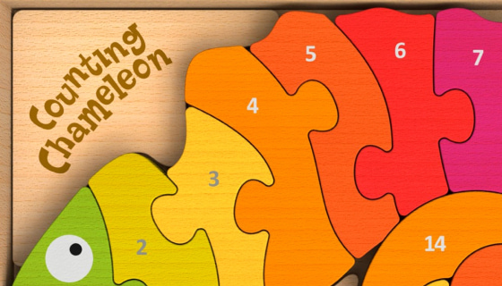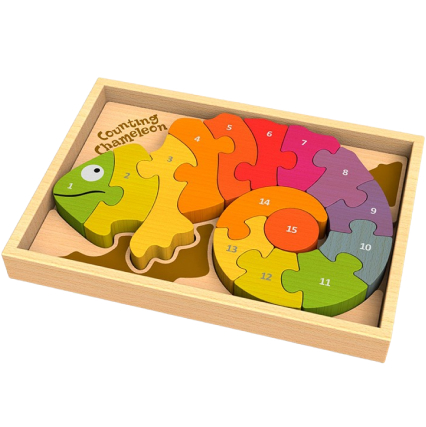 Love this puzzle, as does my 2 1/2 year old granddaughter. It's not the easiest puzzle to put together for a young child, but the chameleon is intriguing and the colors are gorgeous enough to hold a child's interest. Very happy with this purchase.