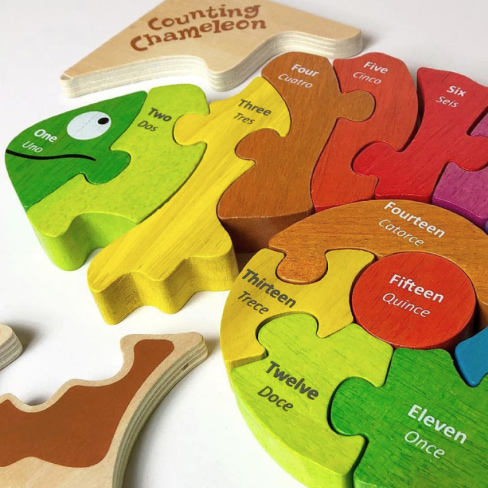 My granddaughter and her big brother love building the puzzle together. I love watching big brother guide his little sister as she learns to count and identify numbers. She is also learning to problem-solve through puzzle building. Like to see it in other languages...
