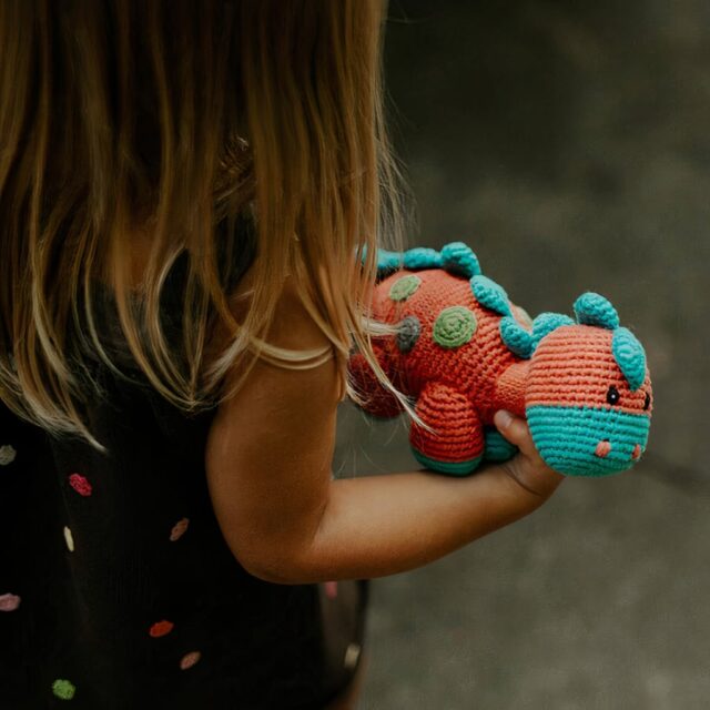 This is such a cute dinosaur. Our little 2 year old granddaughter won’t go anywhere without it. People keep walking up asking where we purchased it. Great size, soft, can stand up on its own and is simply well constructed. Would not hesitate purchasing this item as a gift .