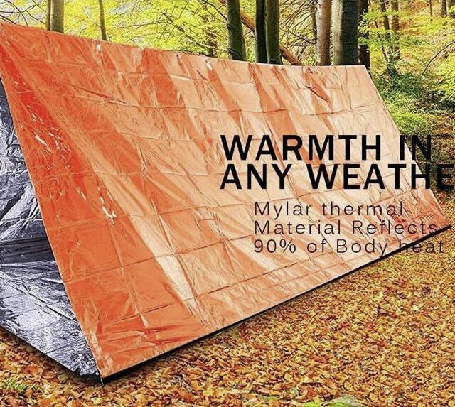 In case of an emergency (or if you’re just out in the desert for a camping trip), you’ll need to stay warm. Mylar thermal material helps retain about 90% of your body heat. Pair with a second sleep bag, you’ll be staying safer and warmer when temperatures plunge.