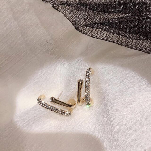 Jewelry materials: alloy and zircon. Weight: 0.17oz./pair. Size: 0.9 in.* 0.3 in.