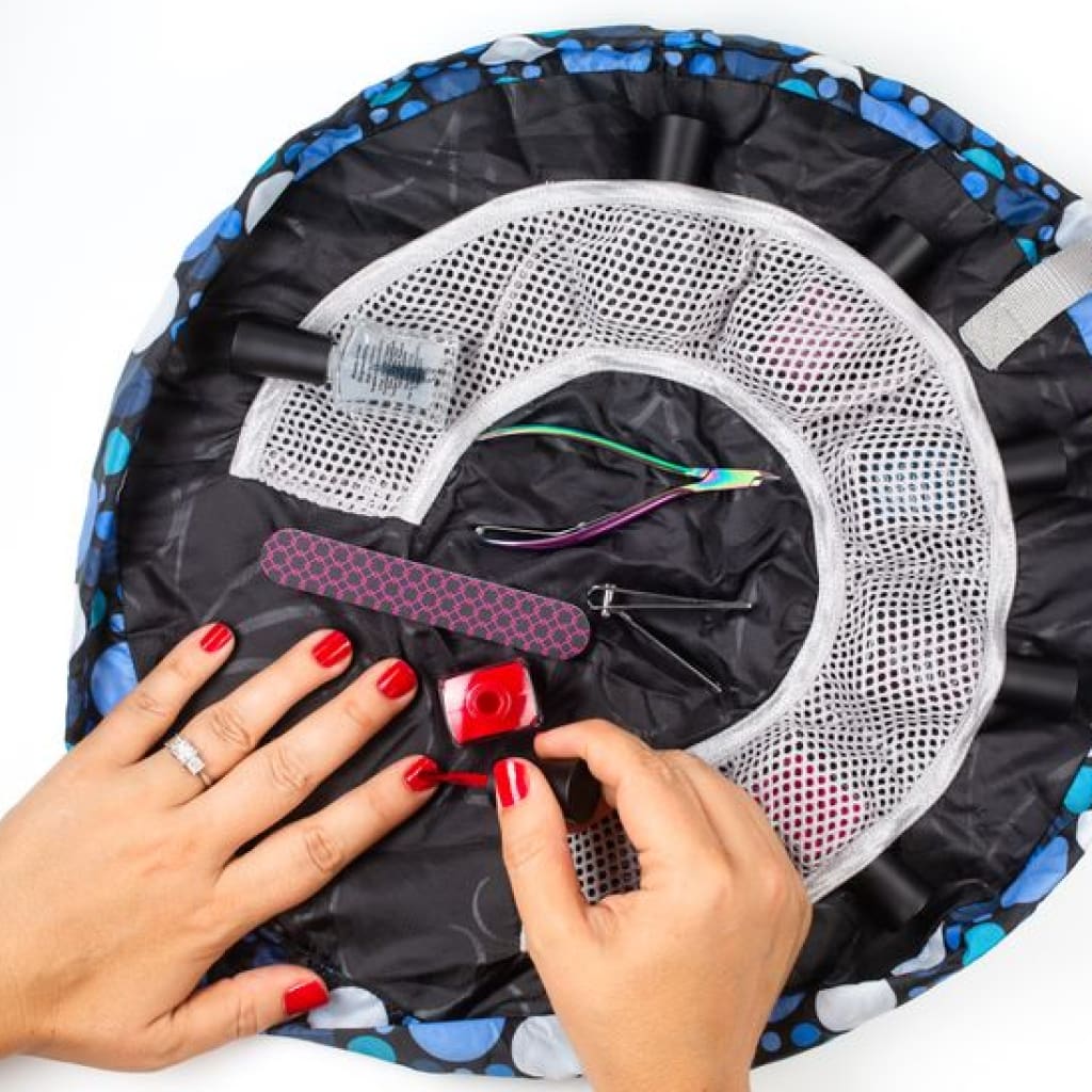 I was tired of fumbling around in my cosmetics and nail polish case and saw this. I was skeptical, but...WOW! On my recent two week trip across Europe, with constant laying out and packing up, this item was wonderful. I could find what I wanted quickly, right away. Packing up was just a matter of pulling the drawstring. At first I wasn’t sure about changing to this bag, but now I could not do without it.