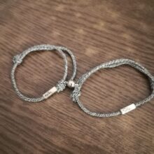Such a cute simple couple bracelet. The size is adjustable and it’s super comfy. I even swim with it on and have no issues. It does stick to everything magnetic, but I find it kinda fun!