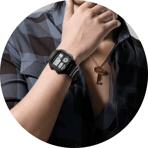 With this watch, you can not only set the time but also, thanks to its multi-functional display, keep track of the day of the week, the date and the month. Additional functions include an alarm clock, an El light, a chronograph, a 12 or 24 hour clock, a countdown feature and dual time.