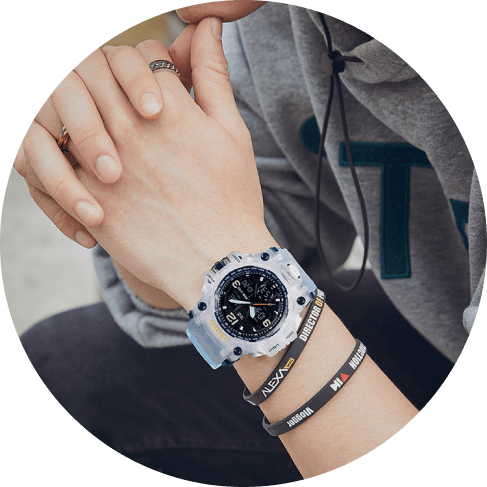 This watch has all the functions you may need for your daily use and for your various activities: dual timezone, calendar day and date, alarm, El light, shock-resistant design.