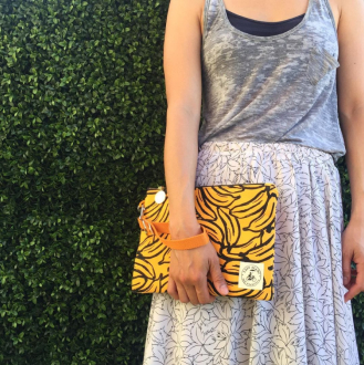 When the situation calls for something more stylish than a basic wallet, the wristlet with a banana pattern comes in.