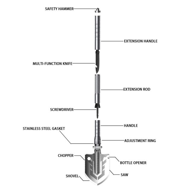 This shovel is the perfect add on to any Jeep, truck, farm, or camping set up. There are so many tools with it and it all compacts very nicely. Love all of the tools and how well they screw in together to make a long shovel handle. Would recommend to anyone.