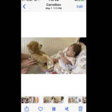 I purchased this for daughter's baby shower celebrating her triplets (born this week, everyone is doing great). Everyone passed this bear around to play with it. The babies will love it.