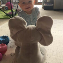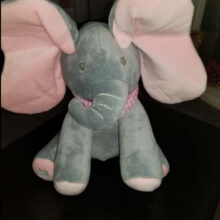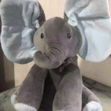 Your child’s new elephant friend has two fun functions: press the left foot to play an interactive game of peek-a-boo; press the right foot to hear the song “Do Your Ears Hang Low” in a cute child’s voice. During both play modes, the elephant’s ears move and flap, like the elephant has come to life: it’s sure to delight your little one.
