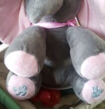 Measuring just 12 inches tall, this interactive plush is small-sized to match young children for something not too large that can be intimidating or scary. Choose from gray, gray/pink, and gray/blue color designs to match your baby’s gender.Handkerchief color is random.