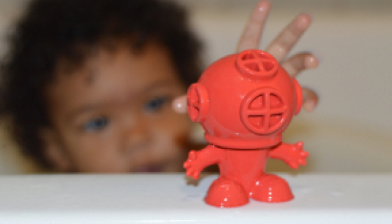 The BeginAgain Shark Tank Bathtub Ball is an endless delight! These toys blow bubbles when fully submerged underwater and add to bathtime fun greatly!