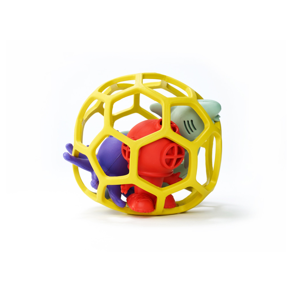 Fun, unique and imaginative, Shark Tank Bathtub Ball toy for toddlers by BeginAgain includes a spherical shark tank, master diver, octopus, and shark bath toy – what could be better for a bath and pool playtime?! BeginAgain Shark Tank Bathtub Ball toy characters blow bubbles when submerged underwater and lend to hours of storytelling and imagination.