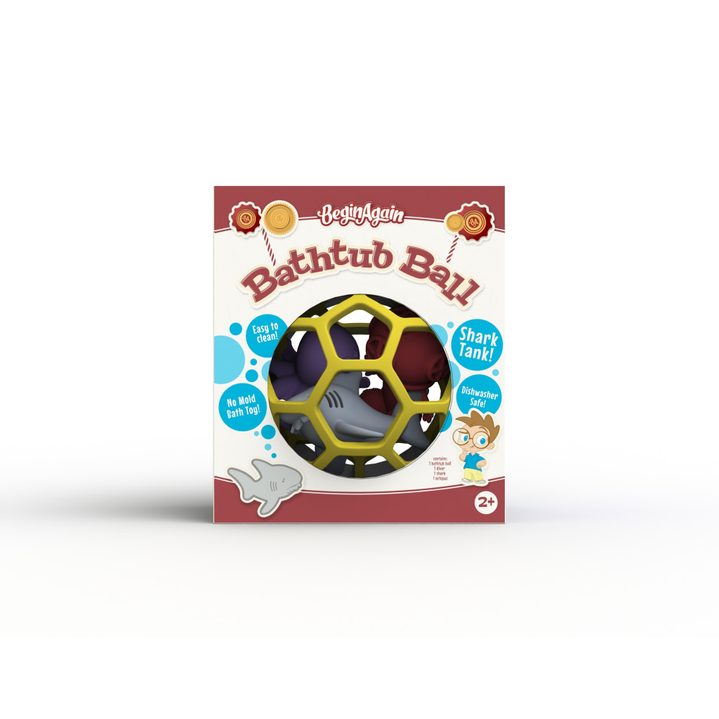 Great for the bath, beach, or pool Fun, unique and imaginative, Shark Tank Bathtub Ball toy for toddlers by BeginAgain includes a spherical shark tank, master diver, octopus, and shark bath toy – what could be better for a bath and pool playtime?! BeginAgain Shark Tank Bathtub Ball toy characters…