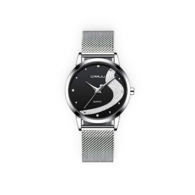 I loved the sleek yet simple design. The face is black with a silver accent, the strap is stainless steel. This watch is wonderful for yourself or to give as a gift. I’d recommend it.