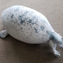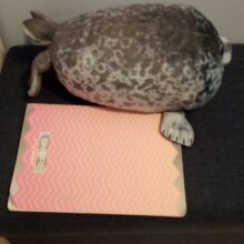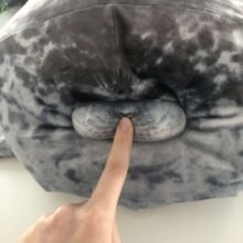 My boyfriend loves seals so when I saw this I just had to get it for him! It’s very soft, fluffy and squishable. However, based off the pictures I thought it was going to be a little bigger. Boyfriend still loves it though! He uses it as a travel pillow! Ha!