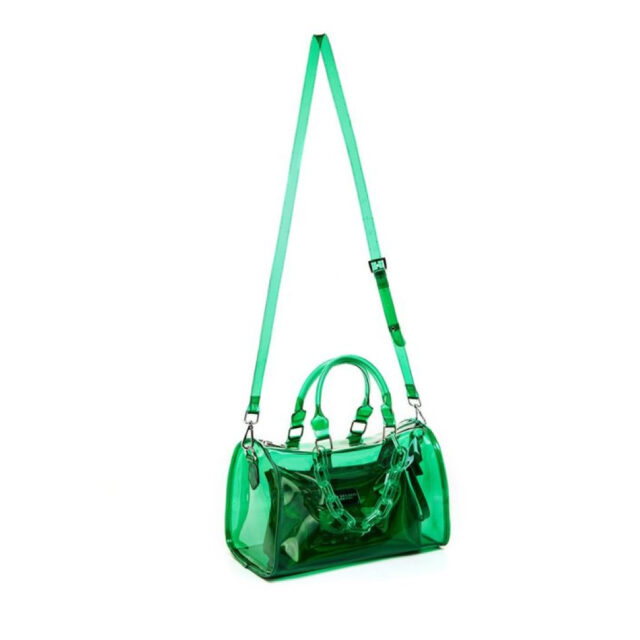 I LOVE this bag, it has this smart design, that even though it’s see-through the inside part is actually not see-through and you can put anything in there without worrying about what people should and shouldn’t see. The material is solid acrylic, it doesn’t get any scratches, doesn’t get wet or dirty. Gonna get one more for sure just to have all the colors!