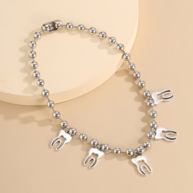 the necklace is super cute :D the chain is long enough to fit my neck, which is pretty wide. the tooth charms look great