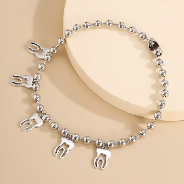 Wonderful necklace, I wear it constantly. The teeth are made well, look great. You can set any length, although make a choker of it. I'm happy with the order, a wonderful necklace.