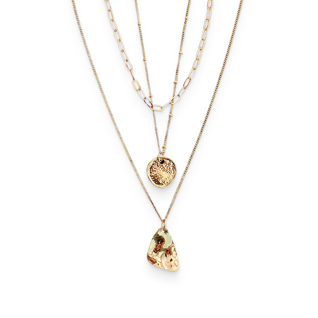 Very good quality for the price. I love that you can layer it so many different ways of just wearing each separately. I would definitely recommend this necklace.