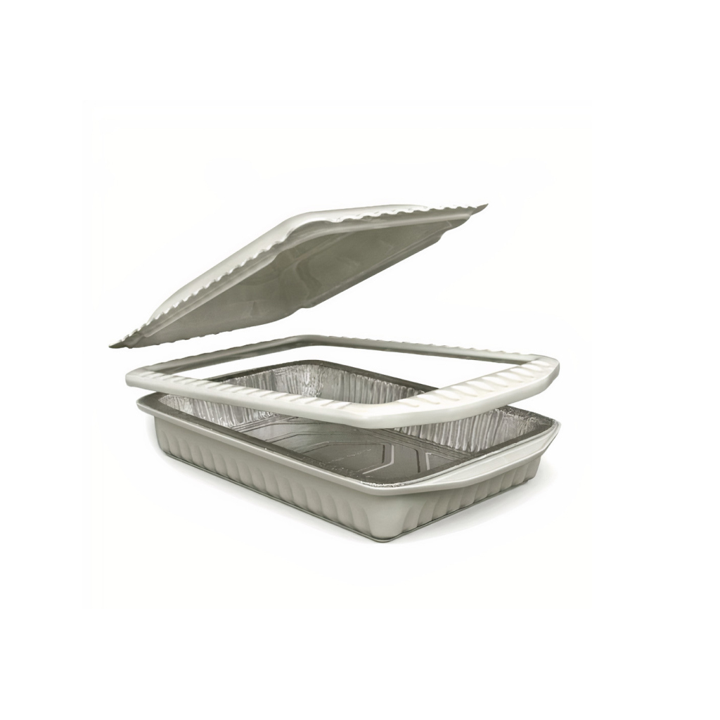 Great product. Easy to use and makes transporting or putting leftovers away easy. With the foil pans less mess and easy cleanup.